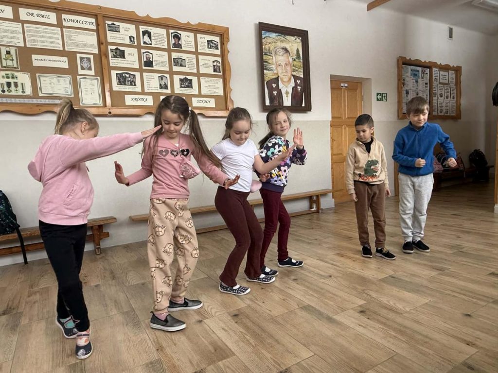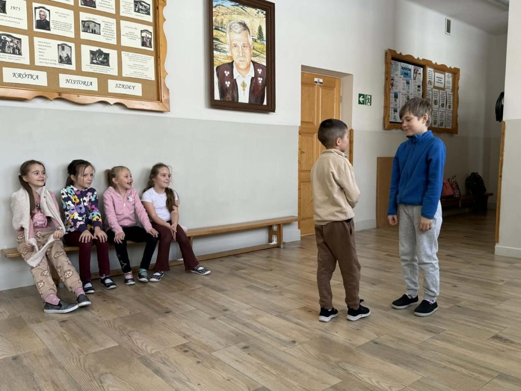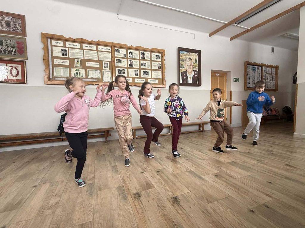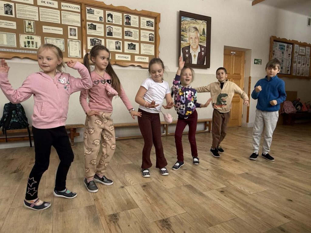 Uczniowie uczestniczyli w różnorodnych działaniach teatralnych, podczas których rozwijali wyobraźnię, kreatywność oraz umiejętność wyrażania emocji poprzez ruch, gest, mimikę i głos. Podczas spotkań dzieci brały udział w improwizacjach scenicznych, zabawach pantomimicznych, ćwiczeniach ruchowych oraz aktywnościach angażujących wyobraźnię i ekspresję sceniczną. Dużym zainteresowaniem cieszyły się działania oparte na odgrywaniu ról, tworzeniu prostych scenek oraz pracy z rekwizytem i przestrzenią sceniczną. Zajęcia sprzyjały rozwijaniu kompetencji społecznych, umiejętności współpracy w grupie oraz budowaniu pewności siebie. Uczniowie chętnie angażowali się w proponowane aktywności, wykazując coraz większą swobodę w wyrażaniu siebie na forum grupy. Regularny udział w zajęciach pozytywnie wpływał na integrację zespołu klasowego oraz wspierał rozwój emocjonalny i twórczy uczniów, wzmacniając ich dobrostan i motywację do działania.