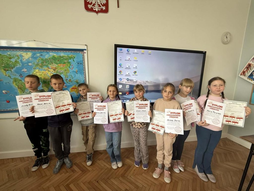 W klasach 1–3 przeprowadzono tygodniowy projekt edukacyjny „Ambasador Uśmiechu”, którego celem było rozwijanie empatii, życzliwości, umiejętności współpracy oraz pozytywnej komunikacji wśród uczniów.