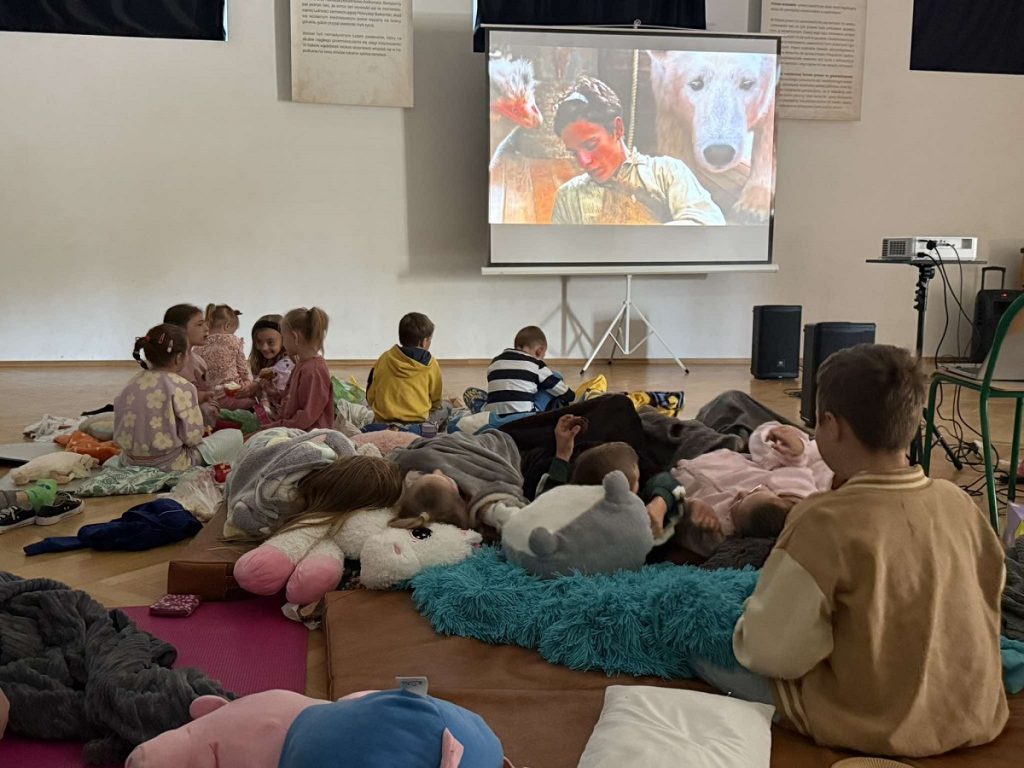 Z okazji Dnia Książki dzieci z oddziału przedszkolnego oraz uczniowie klas I-III oglądali film pt. „Doktor Dolittle” wyświetlany na dużym ekranie.