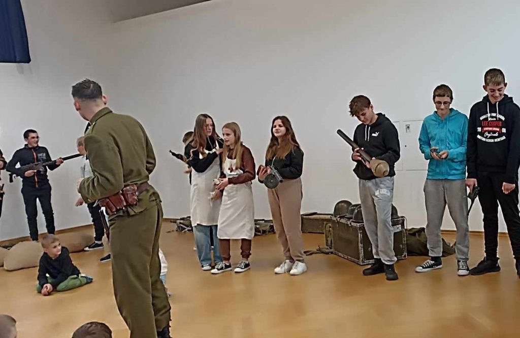 Dnia 18.12.2024r. uczniowie naszej szkoły wzięli udział w żywej lekcji historii pt. „Powstanie Warszawskie”. Uczniowie mogli zapoznać się nie tylko z historią Polski i Polaków podczas II wojny światowej ale i obejrzeć stroje oraz broń z epoki.